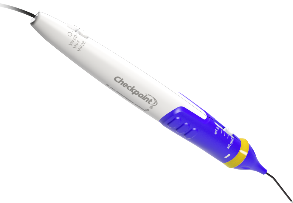 The CHECKPOINT® Nerve Stimulator provides visual confirmation of nerve function and location in the surgical field, even in obscured anatomy. All Checkpoint stimulators may be used safely for sustained or repeated nerve stimulation without diminished response.